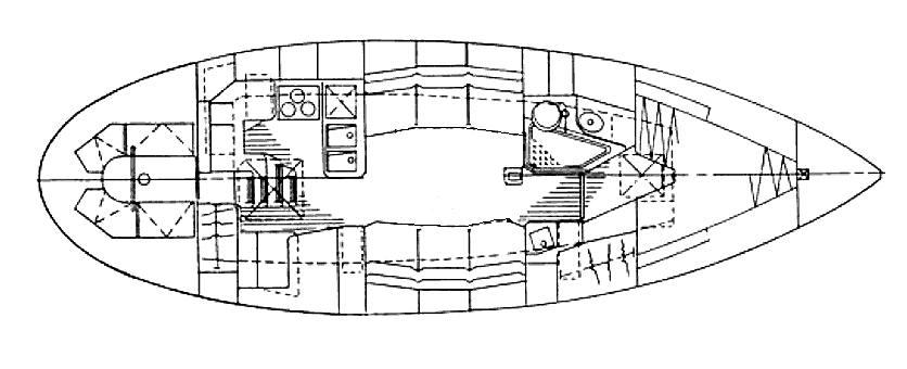 This is the original table layout. As you can see it dominates the salon. With the leaves up, you cannot move through the boat and, even with the leaves down you don't have three square feet to move around in anywhere on the boat.
